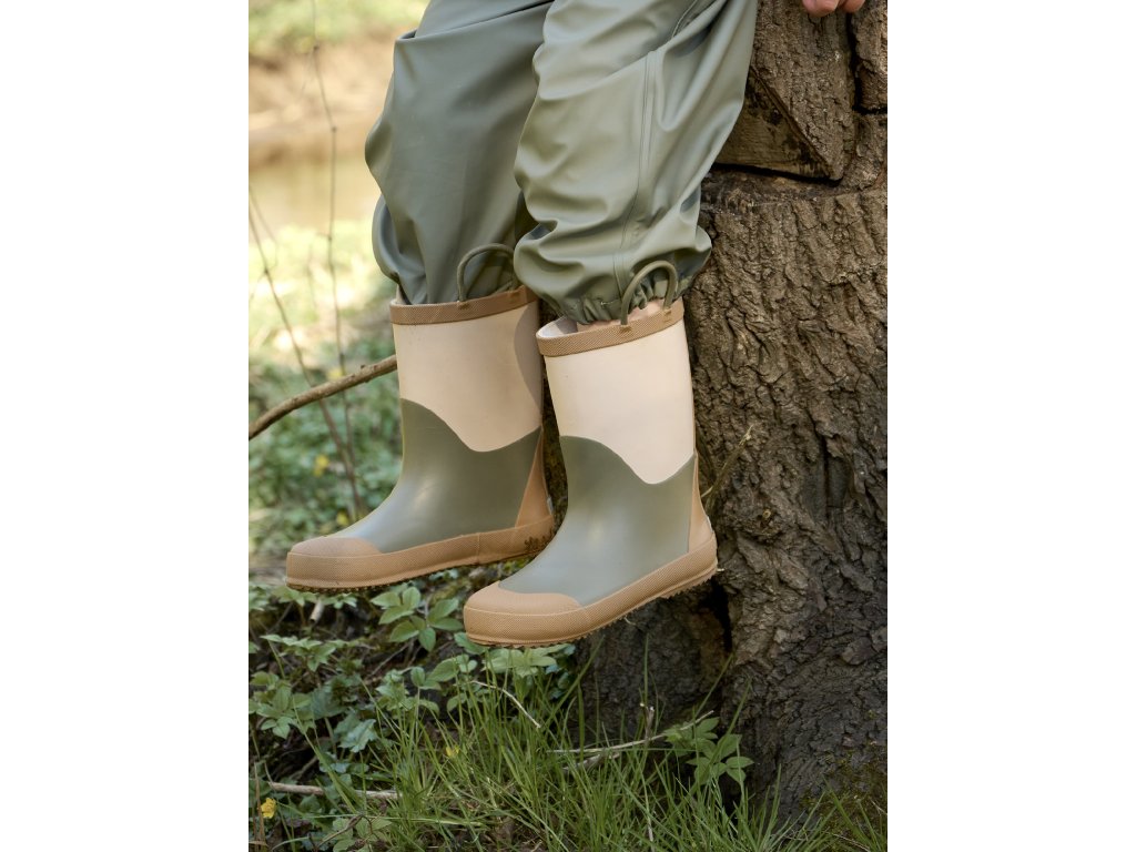 CELAVI detské chlapčenské nezateplené gumáky z prírodného kaučuku Green - Beige