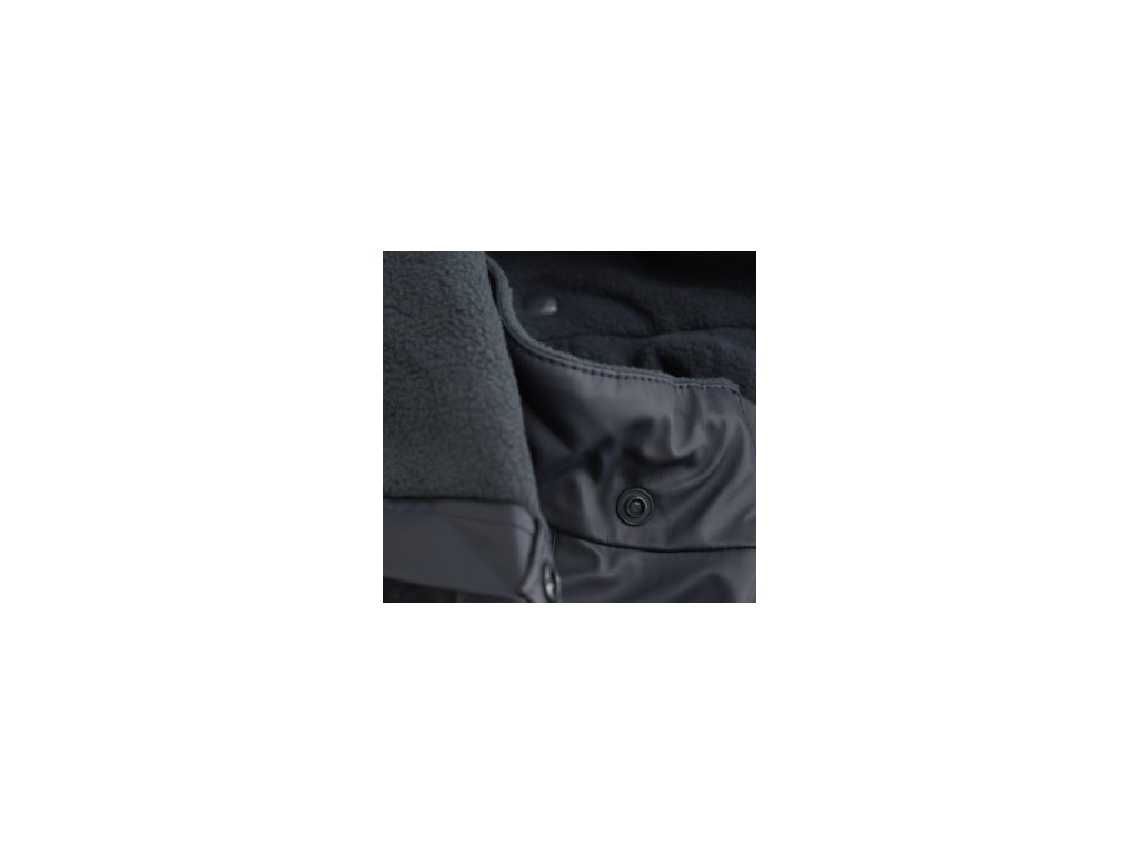 Pršiplášť je vybavený odnímateľnou kapucňou, zapína sa na zips prekrytý vetruodolnou légou s cvokmi a má elastické manžety na rukávoch, vďaka čomu pekne prilieha a bráni prenikaniu vody. Na jednom rukáve sa nachádza reflexný detail zvyšujúci viditeľnosť dieťaťa.