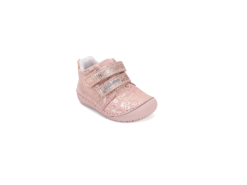 D.D. STEP detské dievčenské prechodné kožené topánky BABY PINK BAREFOOT, *070