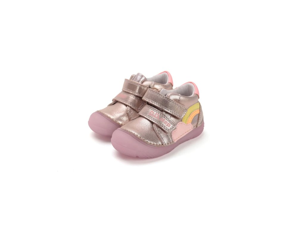 D.D. STEP detské dievčenské prechodné kožené topánky svietiace v tme Champagne Lumino *082