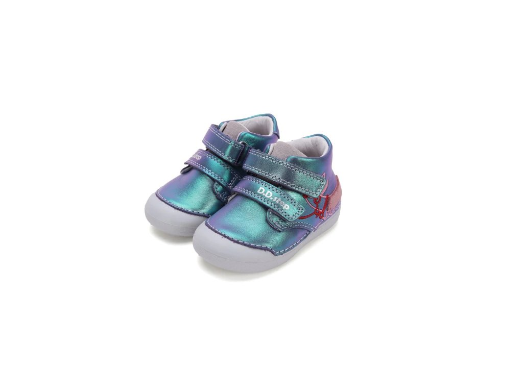 D.D. STEP detské dievčenské prechodné koženné topánky Modrá Perleť LAVENDER, *066