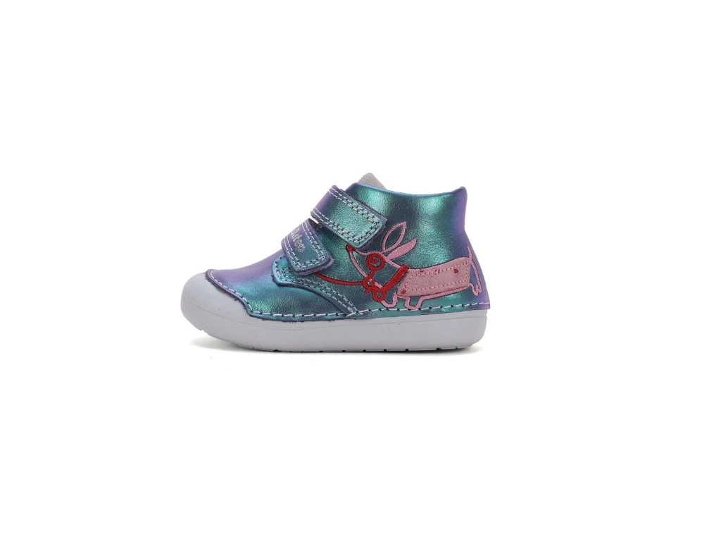 D.D. STEP detské dievčenské prechodné koženné topánky Modrá Perleť LAVENDER, *066