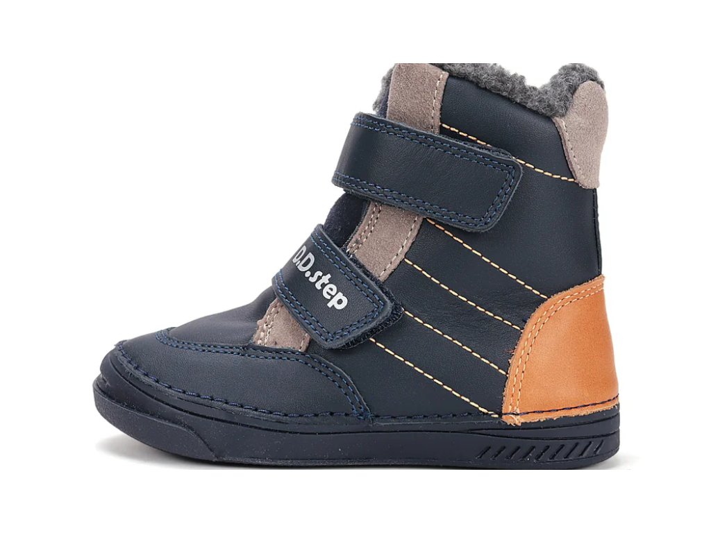 D.D.STEP detské chlapčenské zateplené kožené zimné topánky Royal Blue /orange, *040