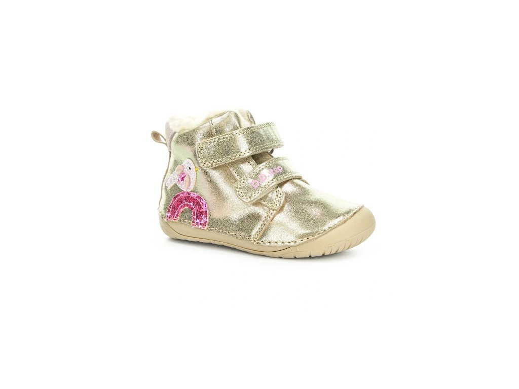 D.D.STEP detské dievčenské kožené zimné topánky trblietavé Cream Girl BAREFOOT, *070