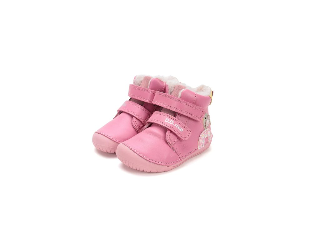 D.D.STEP detské dievčenské kožené zimné topánky svetlo ružové Pink Girl BAREFOOT, *070