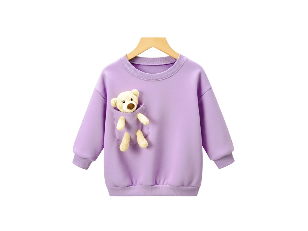Bavlnená mikina v jemnej lila farbe, v cene s odnímateľným plyšákom.