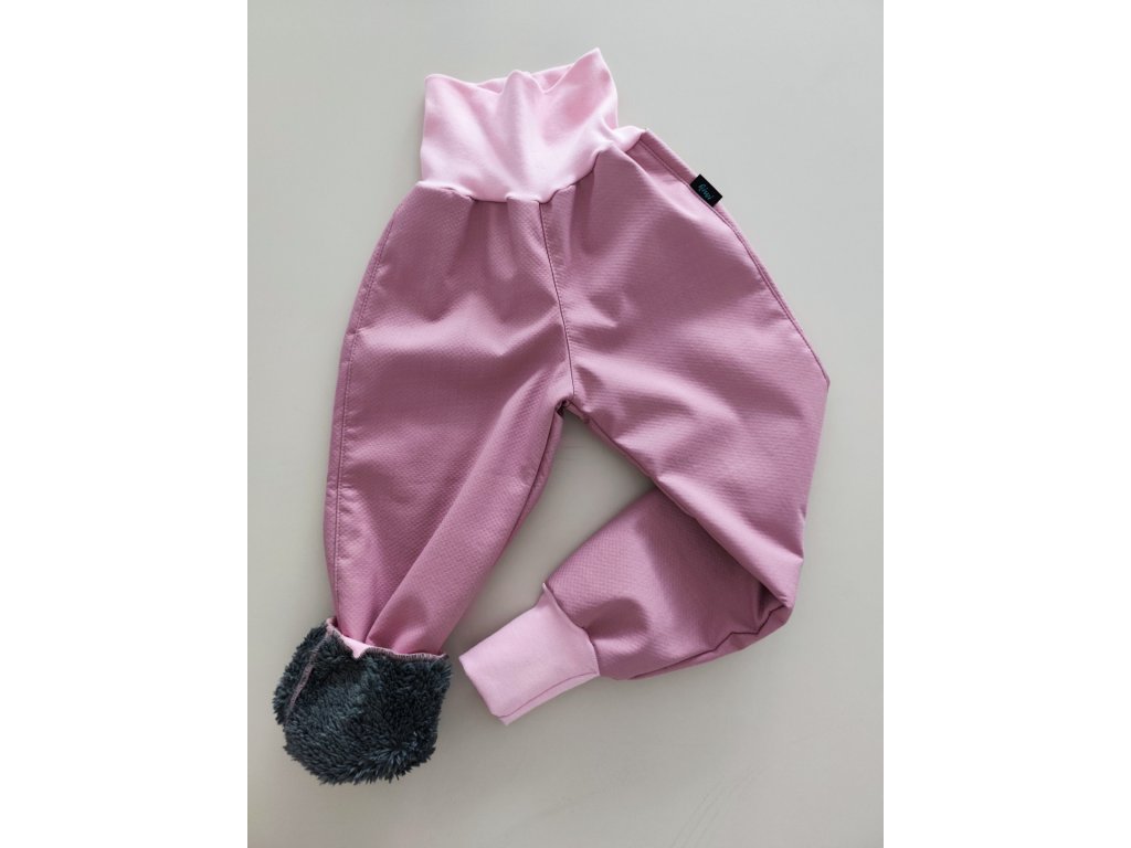 Dievčenské softshelove nohavice zateplene barančekom farba Pudrovo ružová