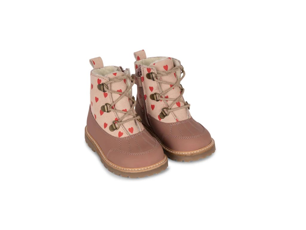 KONGES SLOJD detské dievčenské zateplené zimné topánky so srdiečkami ZURI BOOT HEART