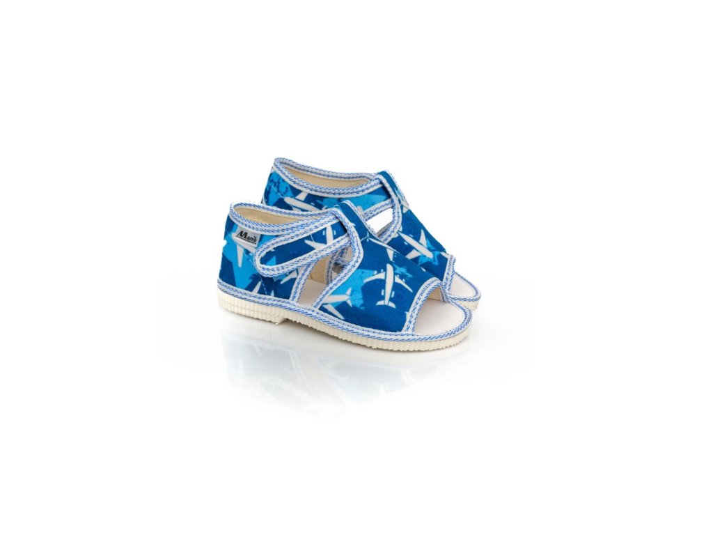 Detské sandálkové papučky s otvorenou špicou, so zapínaním na suchý zips. Jednoduché zapínanie ideálne aj pre našich najmenších. Papučky sú vyrobené z ľahkých a pružných materiálov, a v klenbovej časti sú vystužené ideálne tuhou penou pre podporu zdravého vývoja detskej nožičky. Strih papučiek je prispôsobený detskému chodidlu aby nespôsobovali deformáciu pri vývoji chodidla. Sú určené pre používanie v interiéri.