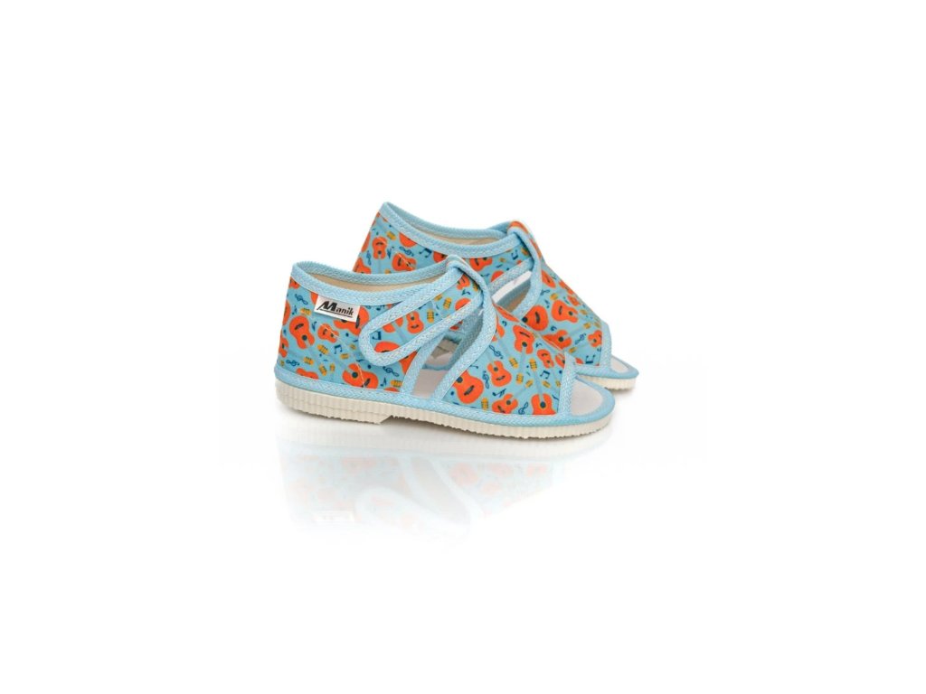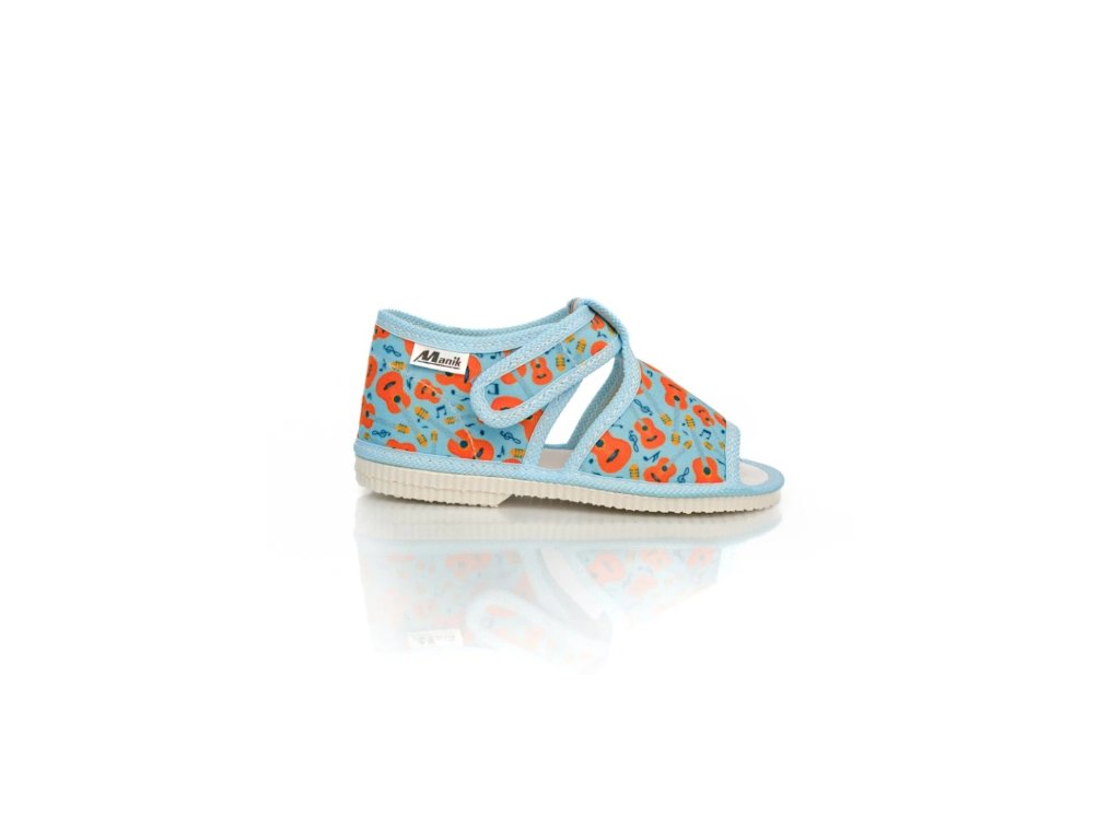 Detské sandálkové papučky s otvorenou špicou, so zapínaním na suchý zips. Jednoduché zapínanie ideálne aj pre našich najmenších. Papučky sú vyrobené z ľahkých a pružných materiálov, a v klenbovej časti sú vystužené ideálne tuhou penou pre podporu zdravého vývoja detskej nožičky. Strih papučiek je prispôsobený detskému chodidlu aby nespôsobovali deformáciu pri vývoji chodidla. Sú určené pre používanie v interiéri.