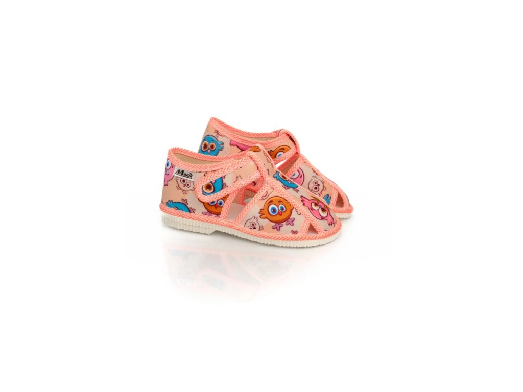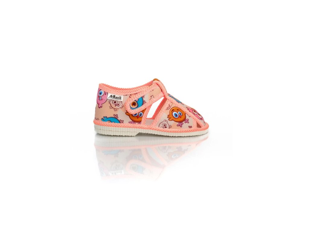 Detské sandálkové papučky so zatvorenou špicou, so zapínaním na suchý zips. Jednoduché zapínanie ideálne aj pre našich najmenších. Papučky sú vyrobené z ľahkých a pružných materiálov, a v klenbovej časti sú vystužené ideálne tuhou penou pre podporu zdravého vývoja detskej nožičky. Strih papučiek je prispôsobený detskému chodidlu aby nespôsobovali deformáciu pri vývoji chodidla. Sú určené pre používanie v interiéri.