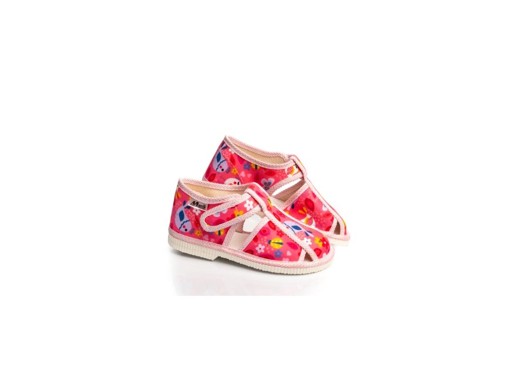 Detské sandálkové papučky so zatvorenou špicou, so zapínaním na suchý zips. Jednoduché zapínanie ideálne aj pre našich najmenších. Papučky sú vyrobené z ľahkých a pružných materiálov, a v klenbovej časti sú vystužené ideálne tuhou penou pre podporu zdravého vývoja detskej nožičky. Strih papučiek je prispôsobený detskému chodidlu aby nespôsobovali deformáciu pri vývoji chodidla. Sú určené pre používanie v interiéri.