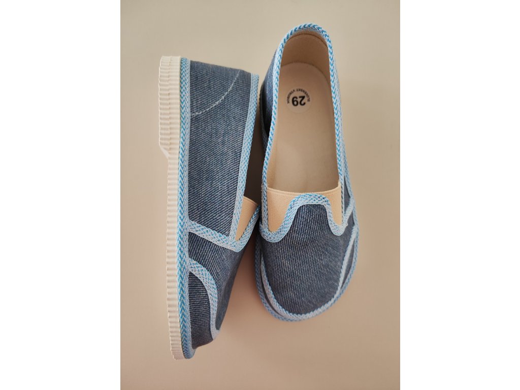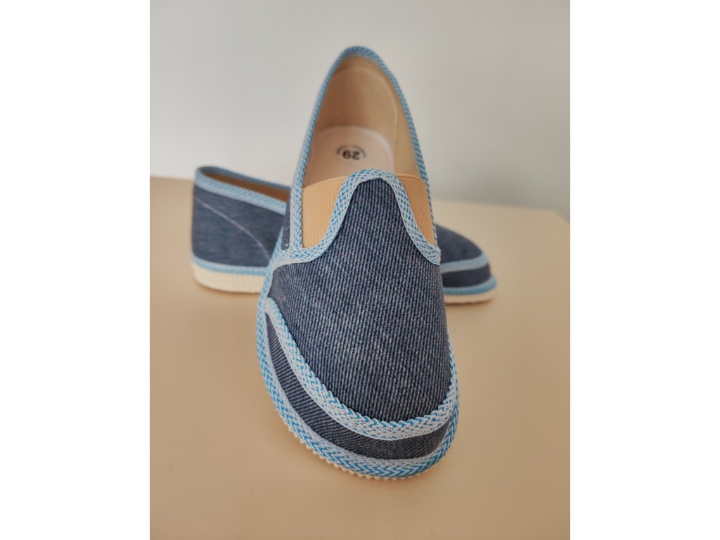Detské našuchovacie papučky so zatvorenou špicou .Strih papučiek je prispôsobený detskému chodidlu aby nespôsobovali deformáciu pri vývoji chodidla. Sú určené pre používanie v interiéri.