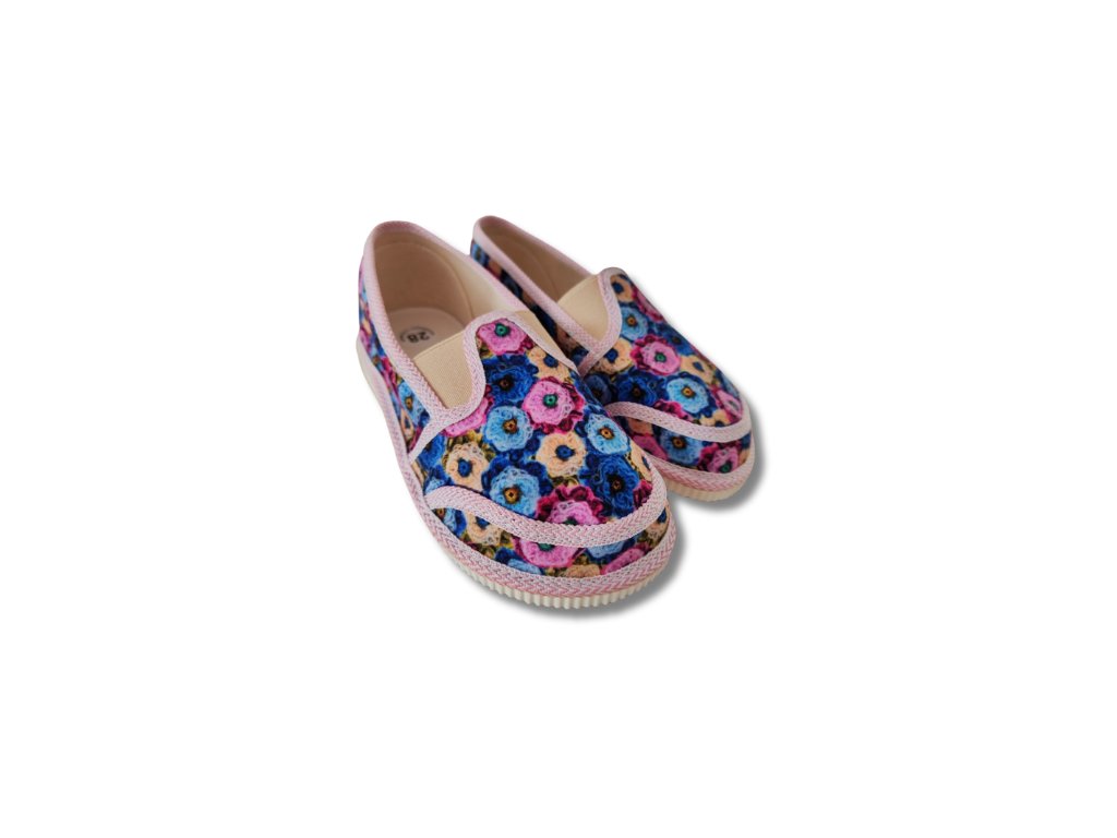 Detské našuchovacie papučky so zatvorenou špicou .Strih papučiek je prispôsobený detskému chodidlu aby nespôsobovali deformáciu pri vývoji chodidla. Sú určené pre používanie v interiéri.