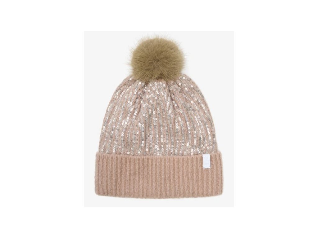 MINYMO dievčenská zateplená čiapka s flitrami ružová Misty Rose