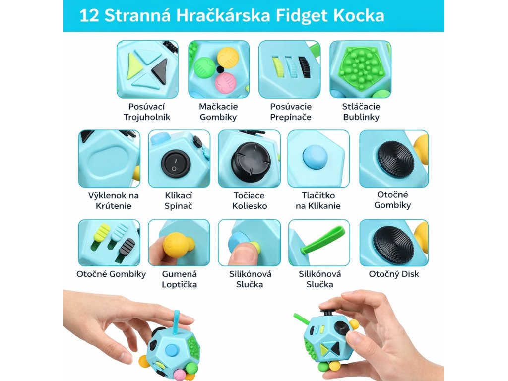 senzorická antistresová fidget kocka na rozvoj jemnej motoriky a koncentrácie