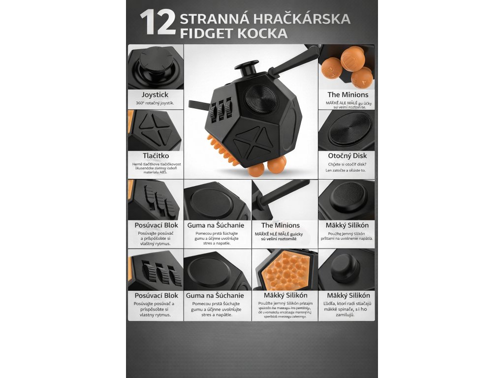 Senzorická antistresová hračka FIDGET pre rozvoj jemnej motoriky Black & Orange